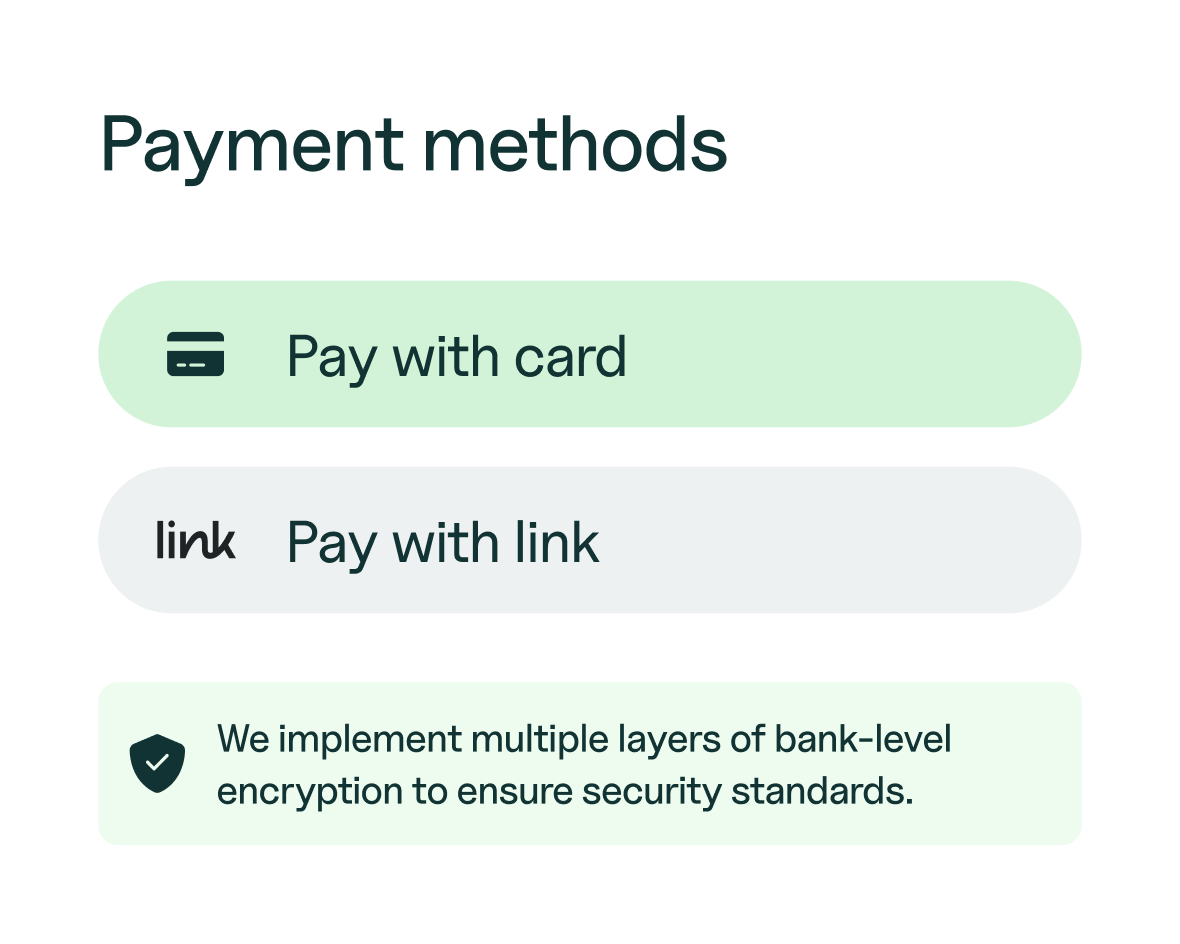 Focus on what matters most and avoid awkward payment conversations by enabling AutoPay. In addition to major credit, debit, FSA, and HSA cards, you can also accept options like Link.